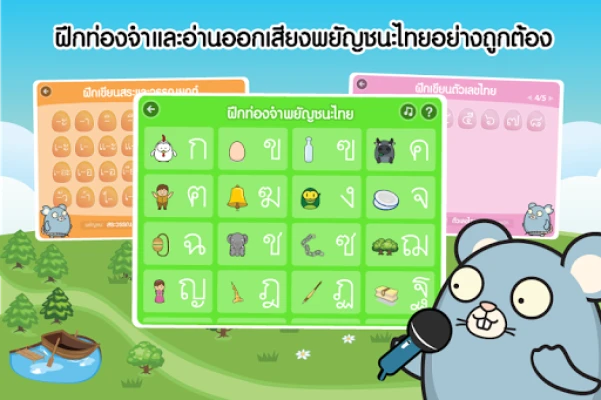 ด้วยคุณสมบัติอันชาญฉลาด "เก่งไทย" ช่วยส่งเสริมการเรียนรู้ภาษาไทยผ่านกิจกรรมที่หลากหลายและโต้ตอบได้จริง ไม่ว่าจะเป็นการฝึกเขียนที่แสดงลำดับและทิศทางเส้นที่ถูกต้องพร้อมระบบตรวจสอบความแม่นยำอัตโนมัติ การปรับขนาดตัวอักษรให้เต็มหน้าจอ หรือแม้แต่การหมุนตัวอักษรเพื่อฝึกเขียนในแนวตั้ง เด็กๆ จะได้ยินเสียงการออกเสียงที่ถูกต้องเมื่อกำลังเขียน และได้รับรางวัลเป็นภาพการ์ตูนเคลื่อนไหวหลังเขียนเสร็จ พร้อมการประเมินผลคะแนนความถูกต้องเป็นเปอร์เซ็นต์ นอกจากนี้ยังมีส่วนของการฝึกท่องจำเสียงพยัญชนะไทย สระ วรรณยุกต์ และตัวเลข รวมถึงมินิเกมสนุกๆ ที่ออกแบบมาเพื่อเสริมสร้างทักษะภาษาไทยได้อย่างเพลิดเพลิน เมนูยังรองรับทั้งภาษาไทยและอังกฤษ เพื่อความสะดวกของผู้ใช้งานทุกระดับ