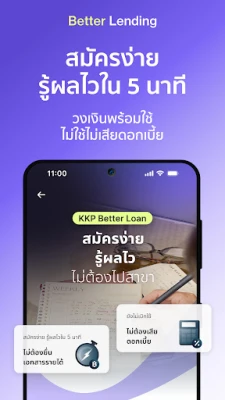 เมื่อความจำเป็นทางการเงินมาถึง Better Lending พร้อมช่วยเหลือด้วยวงเงินพร้อมใช้ที่ทราบผลอนุมัติเบื้องต้นภายใน 5 นาที พร้อมมอบส่วนลดดอกเบี้ยพิเศษสำหรับการใช้วงเงินสินเชื่อในหมวดหมู่ที่กำหนด เช่น การผ่อนชำระสินเชื่อส่วนบุคคลวงเงิน 100,000 บาท ในอัตราดอกเบี้ย 10% ผ่อน 12 เดือน เพียงชำระงวดแรก 9,216.67 บาท (รวมอากรแสตมป์) และงวดถัดไป 9,166.67 บาทต่อเดือน รวมยอดชำระทั้งสิ้น 110,050 บาท นอกจากนี้ เพื่อความอุ่นใจ Better Insurance นำเสนอประกันสุขภาพจาก Generali ที่ซื้อง่ายผ่านแอปพลิเคชัน โดยไม่ต้องตรวจสุขภาพ และยังสะดวกสบายในการยื่นเคลมผ่านแอป GEN 365 โดยไม่ต้องพกเอกสาร KKP Better มุ่งมั่นที่จะเป็นเพื่อนคู่คิดทางการเงินของคุณ ให้คุณสามารถจัดการทุกเรื่องได้อย่างคล่องตัวและมั่นใจ โปรดทราบว่าผลิตภัณฑ์และบริการทั้งหมดอยู่ภายใต้เงื่อนไขและข้อกำหนดของธนาคารเกียรตินาคินภัทร ตลอดจนบริษัทจัดการกองทุน และบริษัทประกันภัยที่เกี่ยวข้อง ผู้ลงทุนและผู้ขอสินเชื่อควรศึกษาข้อมูลและทำความเข้าใจรายละเอียด เงื่อนไข ผลตอบแทน และความเสี่ยงอย่างละเอียดก่อนตัดสินใจ เพื่อประโยชน์สูงสุดของคุณ
