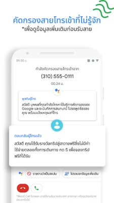 สัมผัสประสบการณ์การจัดการสายเรียกเข้าที่ไม่เคยมีมาก่อนด้วย Call Screen ฟังก์ชันอัจฉริยะที่จะคัดกรองสายจากคนแปลกหน้าให้คุณโดยอัตโนมัติ โดยเฉพาะสายสแปมที่ตรวจพบจะถูกกรองออกไปทันทีโดยไม่รบกวนคุณ ให้คุณมีเวลาตัดสินใจรับสายสำคัญได้อย่างเต็มที่ ยิ่งไปกว่านั้น คุณยังสามารถตรวจสอบข้อความเสียงได้โดยไม่ต้องโทรออก ด้วยข้อความเสียงพร้อมภาพ คุณสามารถดู ฟัง และอ่านข้อความเสียงที่ถอดเป็นคำได้อย่างอิสระ เลือกฟังตามลำดับที่ต้องการ ลบ หรือบันทึกข้อความได้โดยตรงจากแอป พลิกโฉมวิธีการจัดการการสื่อสารของคุณให้ง่ายและมีประสิทธิภาพยิ่งขึ้น