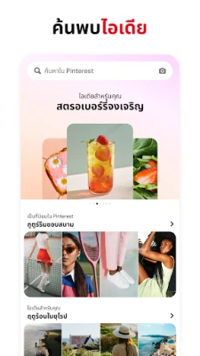 เปิดโลกแห่งแรงบันดาลใจและความเป็นไปได้อันไร้ขีดจำกัดไปกับ Pinterest แพลตฟอร์มที่รวบรวมไอเดียนับพันล้านมาไว้ในมือคุณ ไม่ว่าคุณกำลังมองหาโปรเจกต์ DIY ถัดไป แรงบันดาลใจด้านแฟชั่น หรือแนวคิดในการปรับปรุงบ้าน Pinterest คือขุมทรัพย์แห่งการค้นพบที่จะจุดประกายความคิดสร้างสรรค์ของคุณให้ลุกโชน สำรวจเทรนด์ล่าสุด เรียนรู้ทักษะใหม่ๆ หรือค้นหาสิ่งที่ช่วยให้ชีวิตประจำวันของคุณมีสีสันและน่าตื่นเต้นยิ่งขึ้น