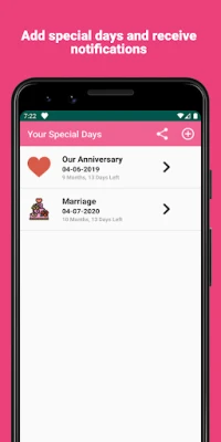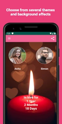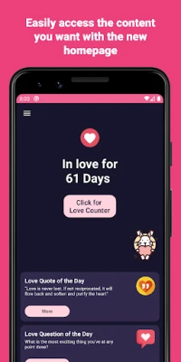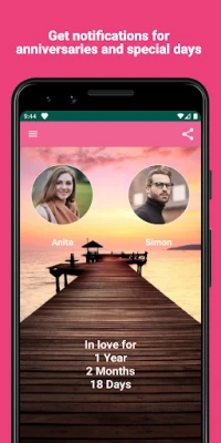 ไม่ว่าจะเป็นวันครบรอบ วันเกิด หรือวันพิเศษอื่นๆ คุณสามารถเพิ่มเหตุการณ์เหล่านี้ลงในปฏิทินส่วนตัวได้อย่างง่ายดาย พร้อมตั้งค่าการแจ้งเตือนความถี่ที่ต้องการ ไม่ว่าจะเป็นรายวัน รายสัปดาห์ รายเดือน หรือรายปี เพื่อให้คุณพร้อมเสมอสำหรับการสร้างความประทับใจ การคำนวณระยะเวลาความสัมพันธ์ก็เป็นเรื่องง่าย ด้วยฟังก์ชันเครื่องคิดเลขความรักที่ช่วยให้คุณทราบได้ทันทีว่าคุณและคนรักเดินทางร่วมกันมากี่วันแล้ว นอกจากนี้ อินเทอร์เฟซที่ใช้งานง่ายยังช่วยให้คุณสามารถปรับแต่งหน้าจอและดีไซน์ให้เข้ากับสไตล์และความรู้สึกของคุณได้เสมอ มอบประสบการณ์การใช้งานที่เป็นส่วนตัวและน่าประทับใจ