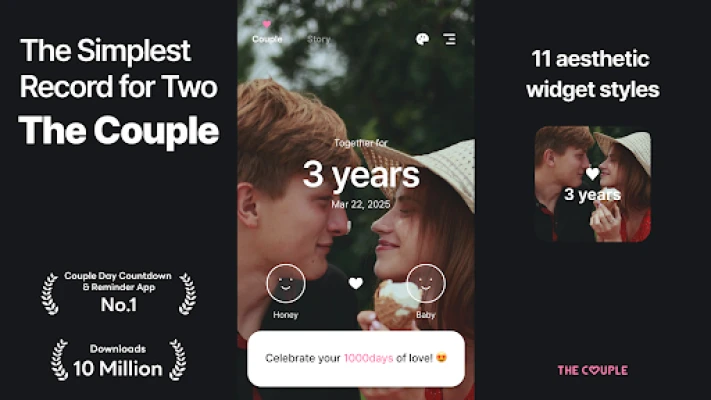 บันทึกทุกความทรงจำอันแสนหวานลงในส่วน "Story" ที่เป็นเสมือนไดอารี่รูปภาพส่วนตัวของคุณ คุณสามารถอัปโหลดภาพถ่ายพร้อมเขียนคำบรรยายความรู้สึก เก็บเรื่องราวของแต่ละวันสำคัญ และแบ่งปันความคิดเห็นระหว่างกันได้ เพื่อย้อนวันวานแห่งความสุขได้ทุกเมื่อที่ต้องการ และเพื่อความสะดวกสบายยิ่งขึ้น The Couple ยังมีวิดเจ็ตสำหรับหน้าจอหลัก ให้คุณตรวจสอบวันครบรอบและวันเกิดของคนรักได้อย่างรวดเร็วเพียงปลายนิ้วสัมผัส หากคุณต้องการยกระดับประสบการณ์การใช้งานให้พิเศษยิ่งขึ้น ทาง thedaybefore.kr ขอเสนอ The Couple Premium เพื่อปลดล็อกฟีเจอร์ขั้นสูงและไม่มีโฆษณามากวนใจ