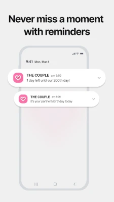 เชื่อมโยงหัวใจและสร้างโลกใบเล็กส่วนตัวสำหรับสองคุณด้วย The Couple แอปพลิเคชันที่ออกแบบมาเพื่อคู่รักโดยเฉพาะ แม้ตารางชีวิตจะเร่งรีบเพียงใด คุณก็จะไม่พลาดช่วงเวลาอันล้ำค่าที่จะสร้างความทรงจำร่วมกัน ตั้งแต่วันครบรอบสำคัญ วันเกิดของคนรัก ไปจนถึงเรื่องราวในแต่ละวัน The Couple รวบรวมทุกสิ่งไว้อย่างครบถ้วนในที่เดียว ให้คุณและคนรักได้แบ่งปันความสุขและเก็บรักษาความผูกพันไว้อย่างยั่งยืน