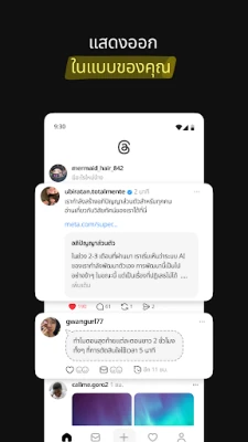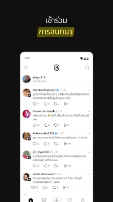 ปลดล็อกโลกแห่งบทสนทนาที่ไร้ขีดจำกัดและเชื่อมต่อกับผู้คนที่มีความหลงใหลเดียวกันบน Threads ไม่ว่าคุณจะต้องการเจาะลึกในเรื่องที่กำลังเป็นกระแส สนทนาเกี่ยวกับเทรนด์แห่งอนาคต หรือเพียงแค่ค้นหาคอมมูนิตี้ที่เข้าใจคุณ Threads คือพื้นที่ที่เปิดโอกาสให้คุณแสดงความคิดเห็น ค้นพบแรงบันดาลใจ และสร้างสรรค์ความสัมพันธ์อันแน่นแฟ้นกับผู้คนทั่วโลก มารวมตัวกันเพื่อสำรวจหัวข้อต่างๆ ตั้งแต่สิ่งที่คุณสนใจไปจนถึงสิ่งที่กำลังจะมาถึง เพื่อแบ่งปันและสร้างสรรค์สิ่งใหม่ๆ ไปด้วยกัน